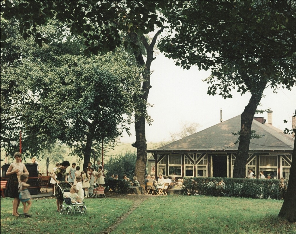 Da die Gaststätte auch damals schon zum Unterhalt der Anlage beigetragen hat, wurde die bis dahin offene Veranda verglast und die komplette Bestuhlung erneuert, außerdem wurden auch Tische und Stühle für den Außenbetrieb angeschafft. Zeitgleich wurde ein eingeschossiger Klinkerbau mit drei Räumen errichtet, wobei ein Raum als Vereinsbüro angelegt wurde. Die Kosten hierfür beliefen sich auf ca. 40.000 RM. Auch für dieses Projekt stellte die Schlegelbrauerei ein Darlehen in Höhe von 8000 RM, gegen die persönliche Bürgschaft einiger Vorstandsmitglieder, zur Verfügung. Die Stadtverwaltung zahlte dem Verein eine Beihilfe von 4000 RM.