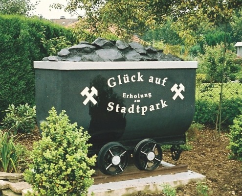 Im Jahr 2002 wurde mit der Unterstützung des Deutschen Bergbau-Museums Bochum unser heutiges „Wahrzeichen“ die Bergbaulore errichtet. Mit einem Festakt und Vertretern des DBM , sowie des Stadtverbandes der Kleingärtner wurde diese ihrer Bestimmung übergeben.